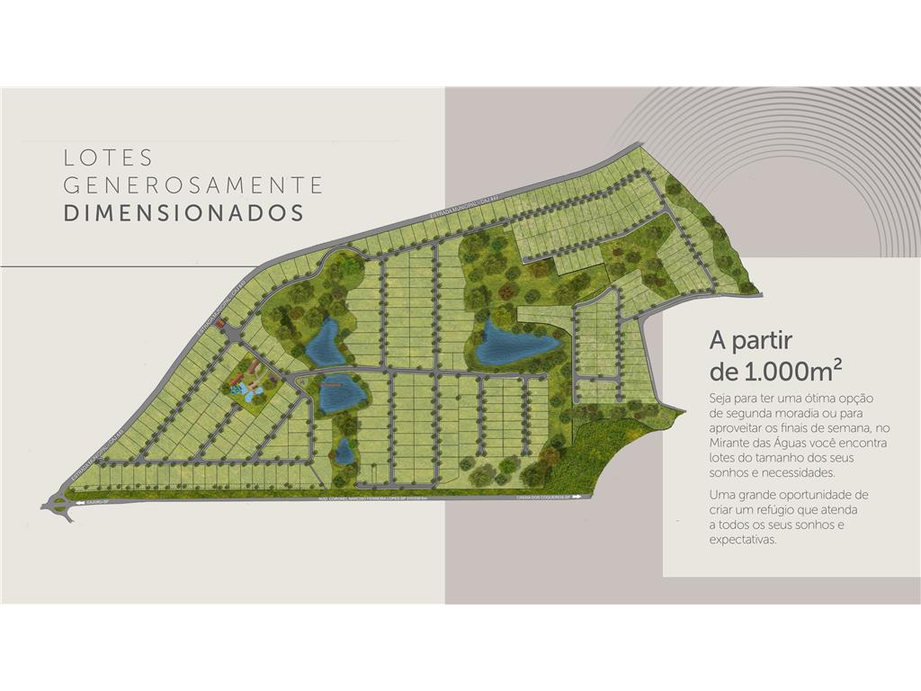 Empreendimento de alto padrão, planejado para oferecer lazer completo em meio à natureza, com infraestrutura diferenciada, segurança permanente e lotes a partir de 1.000 m².